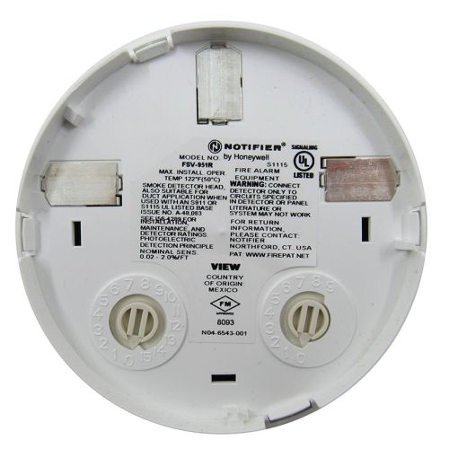 The Notifier FSV-951R (VIEW) is an intelligent high sensitivity photoelectric smoke detector for very early warning fire detection on Notifier SLC loops using FlashScan protocol. It uses a refined smoke sensing chamber and patented optic block to amplify real smoke signals while reducing internal reflections that can cause false alarms. FSV-951R (VIEW) is UL listed for open area and duct applications in DNR/DNRW housings, uses rotary decimal switches for addressing with remote test capability, and replaces the legacy FSL-751 laser detector.